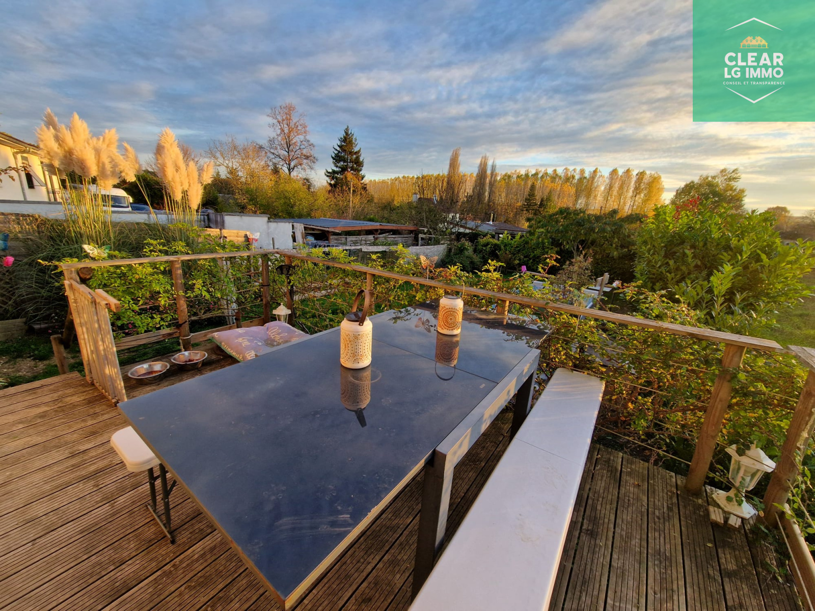 Implantée sur un terrain de 588 m², elle bénéficie d’une cour avant permettant de stationner plusieurs véhicules et d’une aire de jeux pour enfants. À l’arrière, vous profiterez d’une agréable terrasse avec store ban, offrant une vue dégagée sur la campagne et donnant sur un jardin arboré.