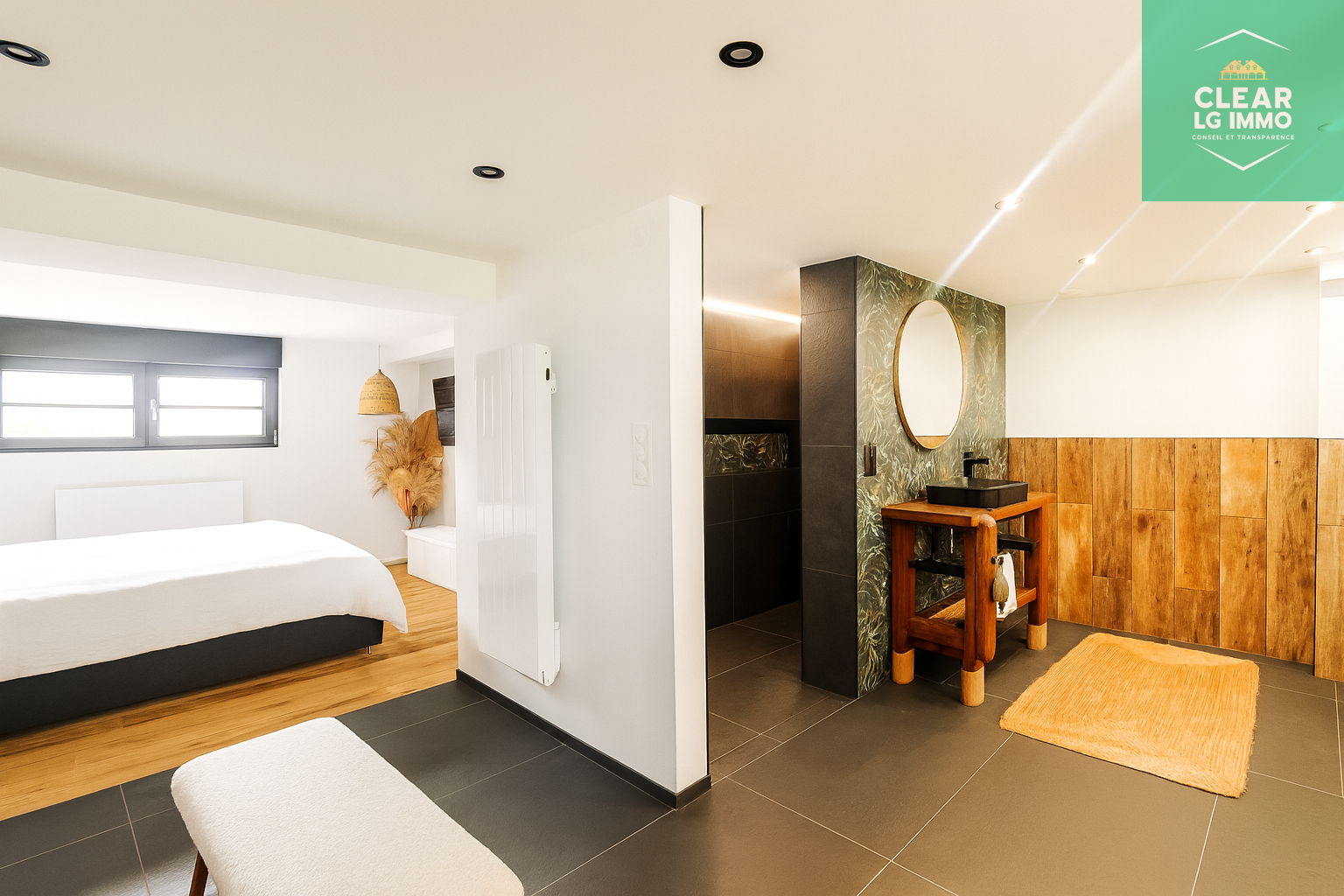 Vous apprécierez les deux salles de bains équipées de douches italiennes et d’effets lumineux, trois chambres dont une suite parentale, ainsi que des toilettes suspendues au design élégant. La cuisine ouverte, totalement équipée, s’ouvre sur un salon-salle à manger baigné de lumière, avec un accès direct à une terrasse suspendue, idéale pour les beaux jours.