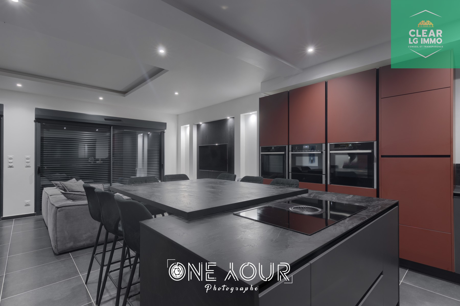 Un vaste espace salon / séjour / cuisine de 60 m², avec deux espaces TV pour un confort optimal.