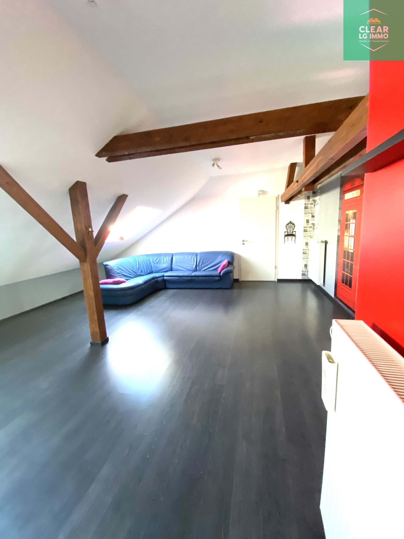 Les combles sont aménagés d’une grande pièce plus une chambre et un point d’eau.