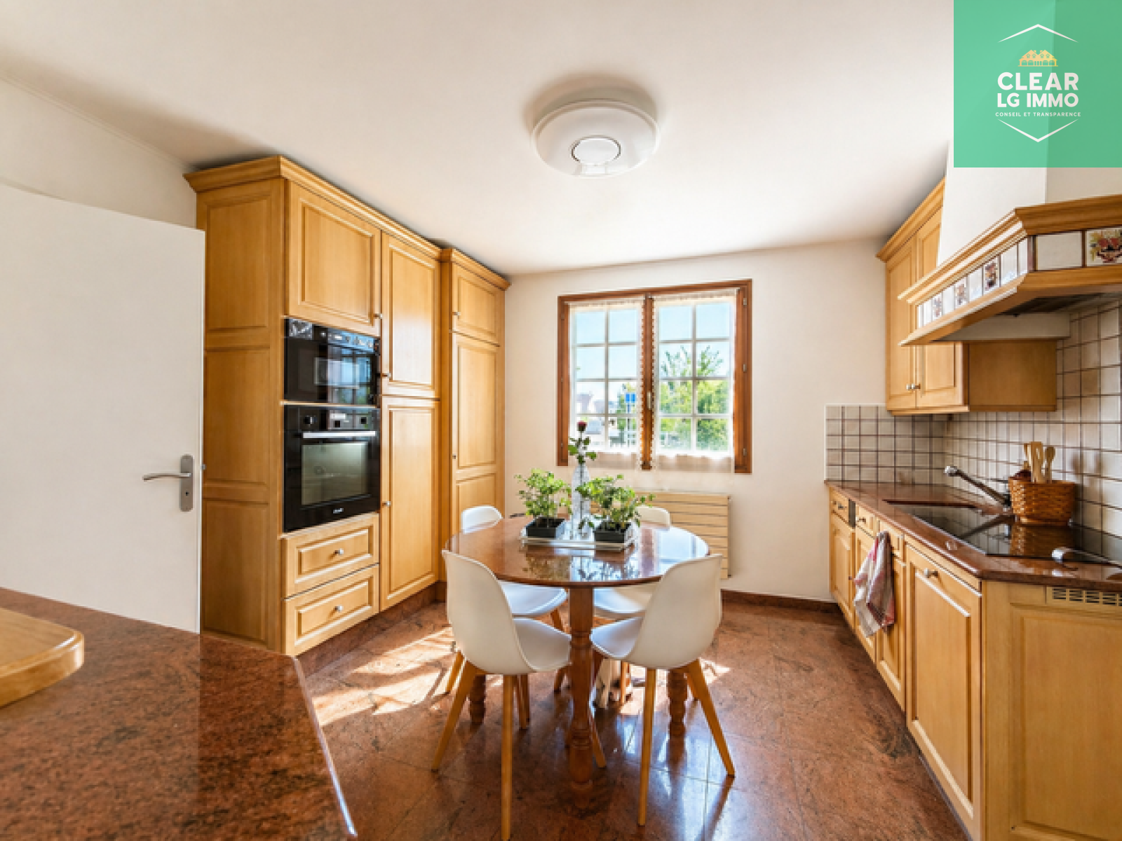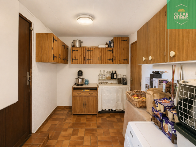 La maison dispose également d’une cuisine équipée, avec accès pratique au cellier et au garage.