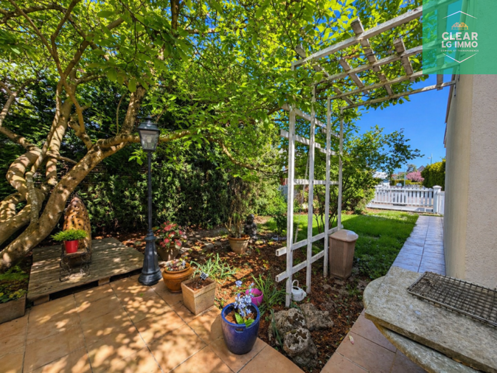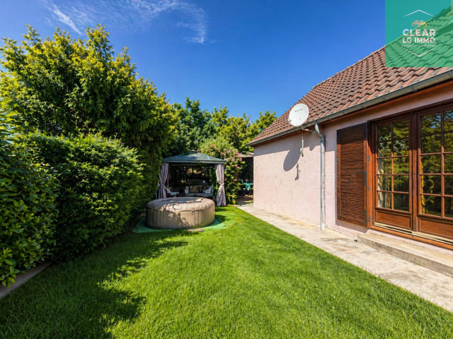À l’extérieur, vous profiterez d’un terrain de 528 m², d’une terrasse avec barbecue et d’un jardin au calme, sans vis-à-vis.